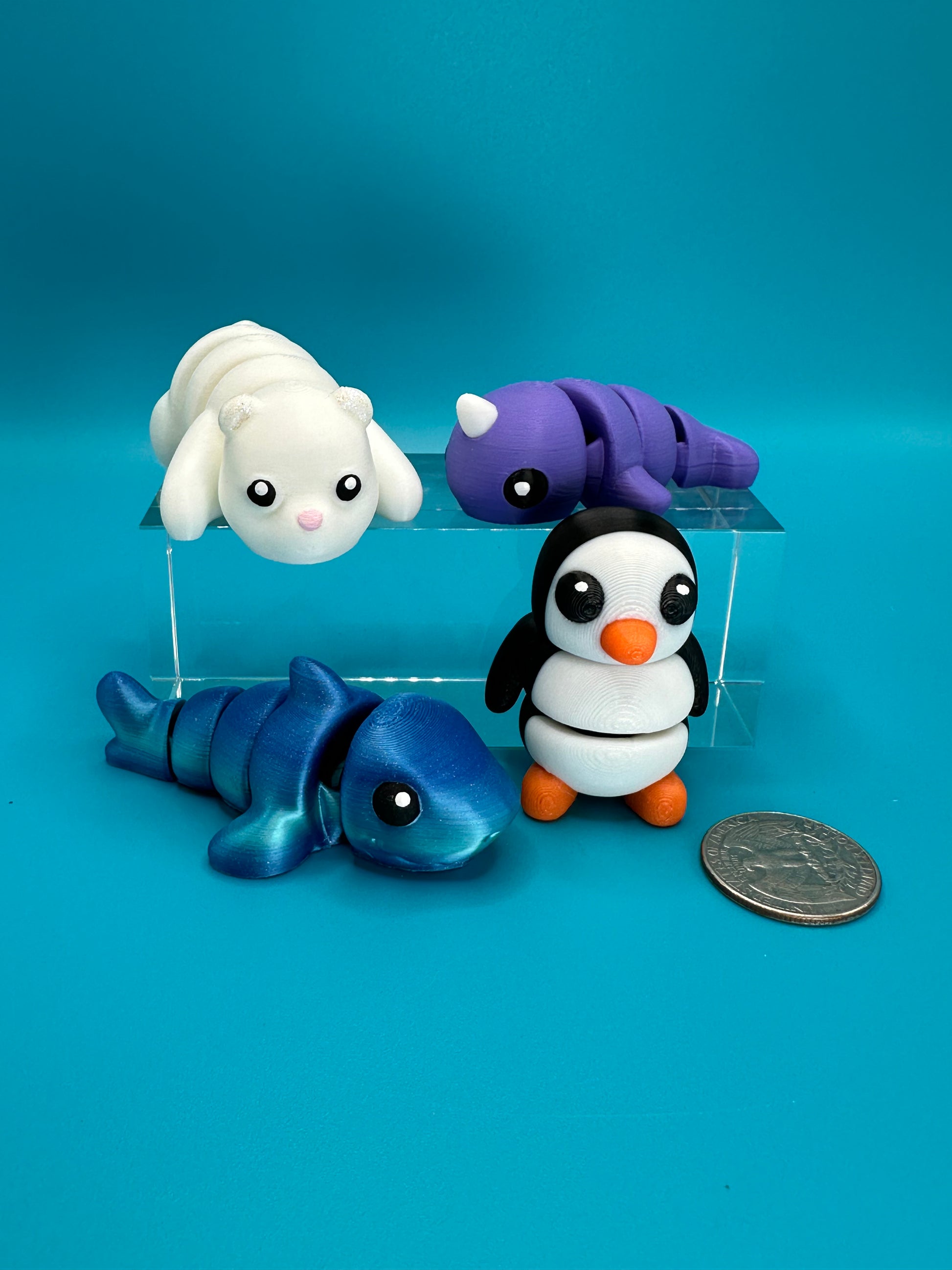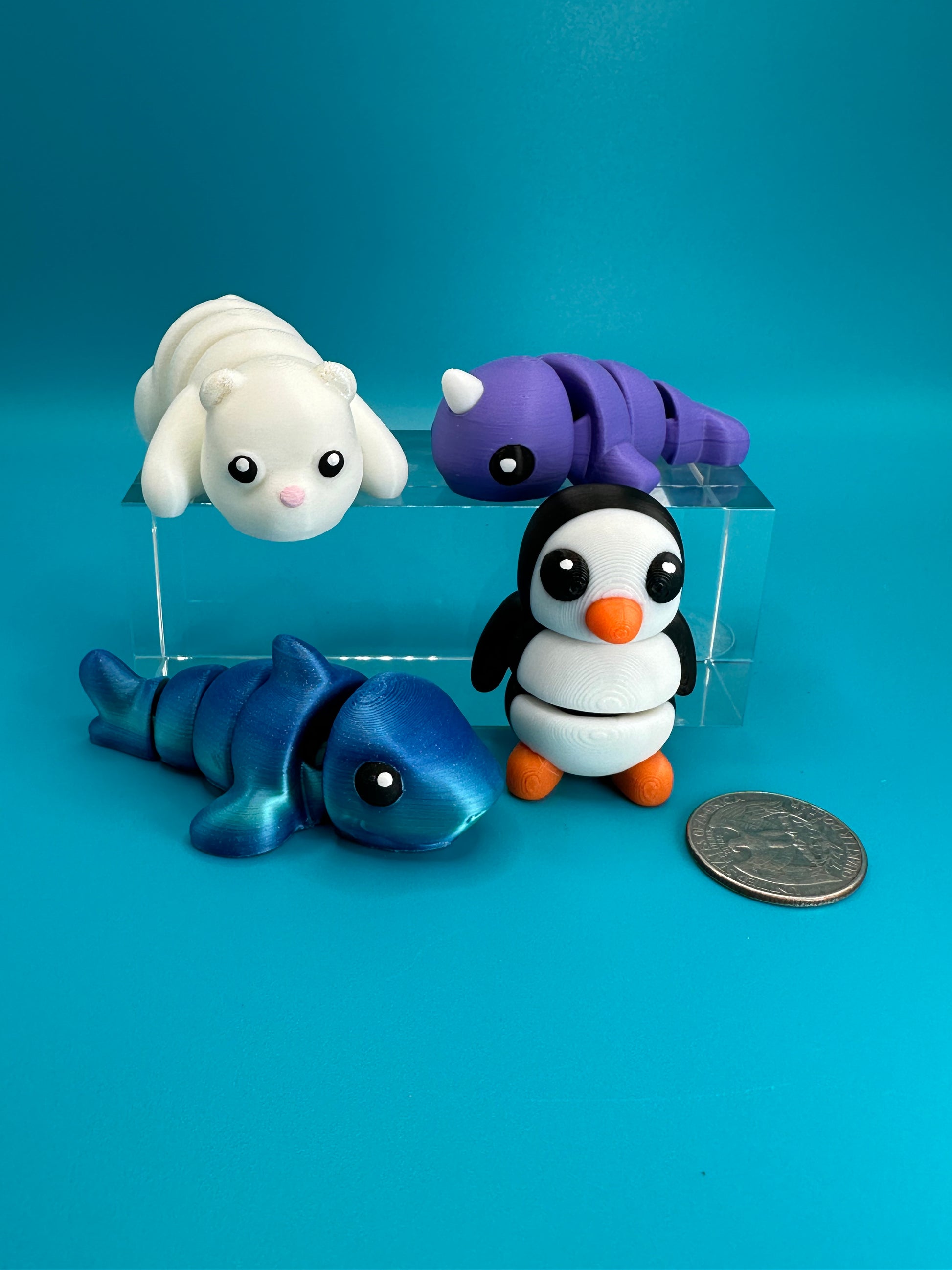 Welcome to the Arctic with this 3d printed pack of adorable Arctic animals! Bring the icy wonderland into your room and let your imagination roam free with these unique and charming creatures. Perfect for any animal lover, this pack is sure to evoke a sense of playful adventure and wonder.