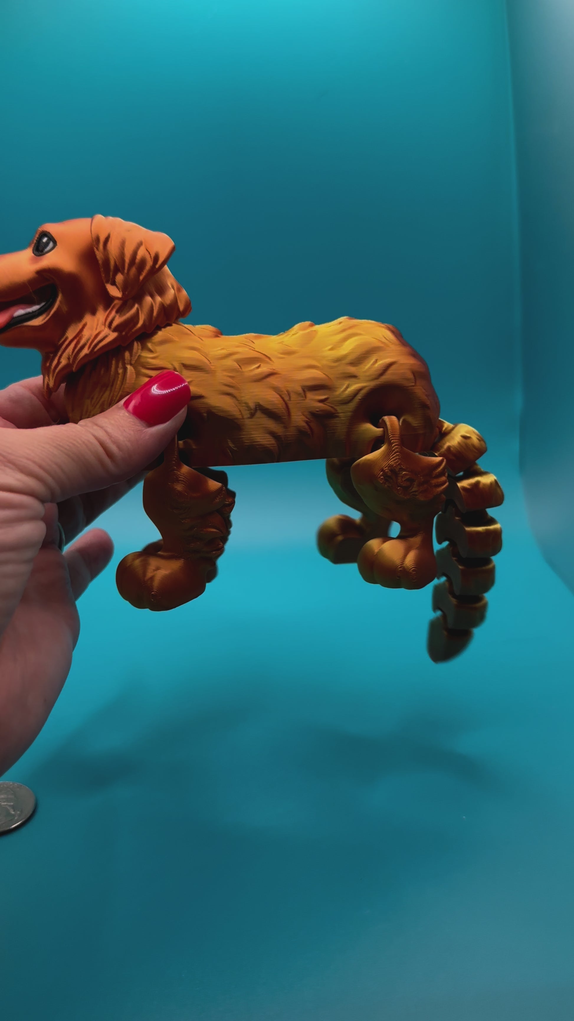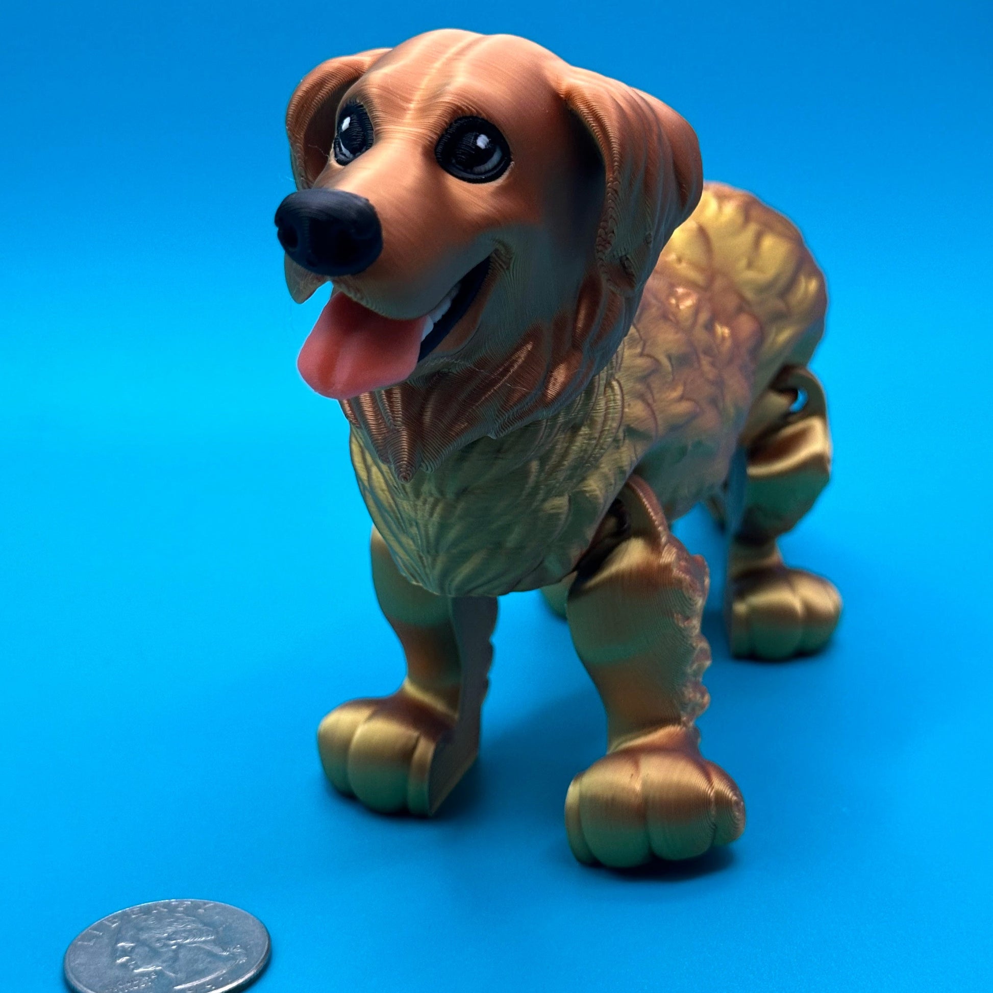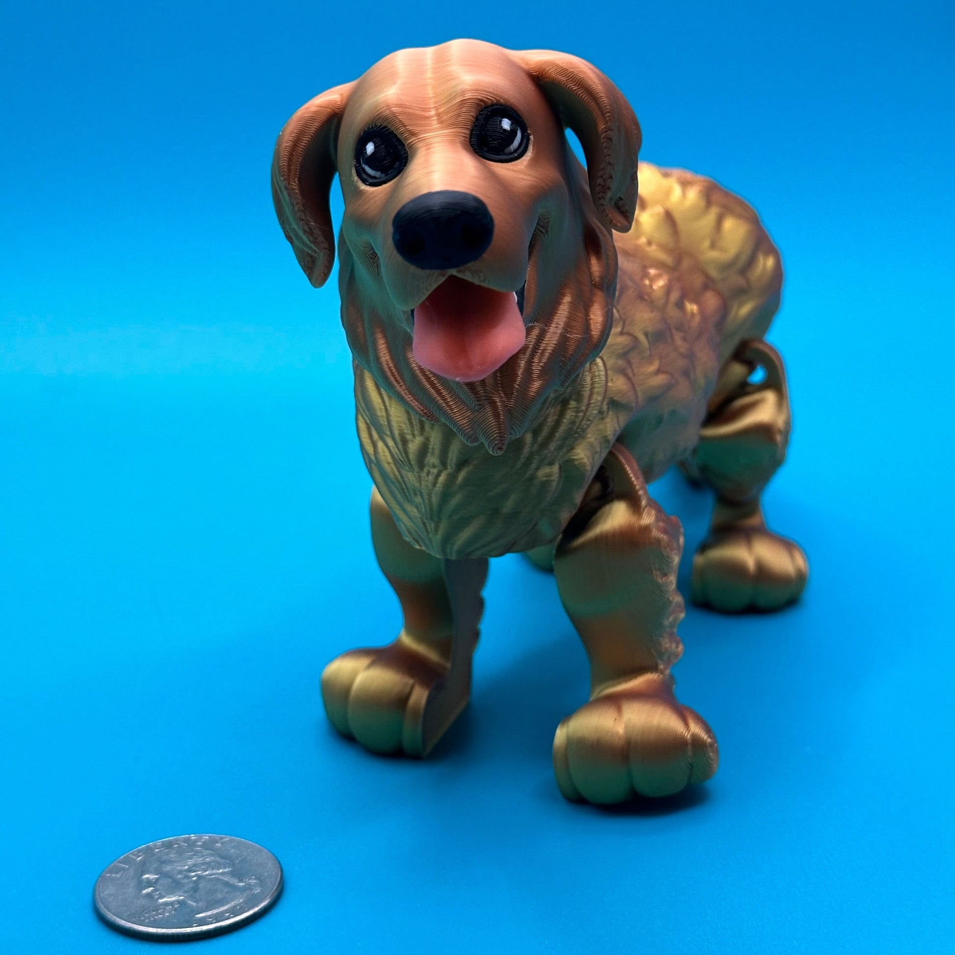 Get ready to have a wagging good time with our Articulating 3D Printed Golden Retriever Toy! This playful pup is printed with precision out of a silky, eye-catching gold/copper filament and can move its joints, making it the perfect addition to your toy collection. A woof-tastic choice for dog lovers of all ages.
