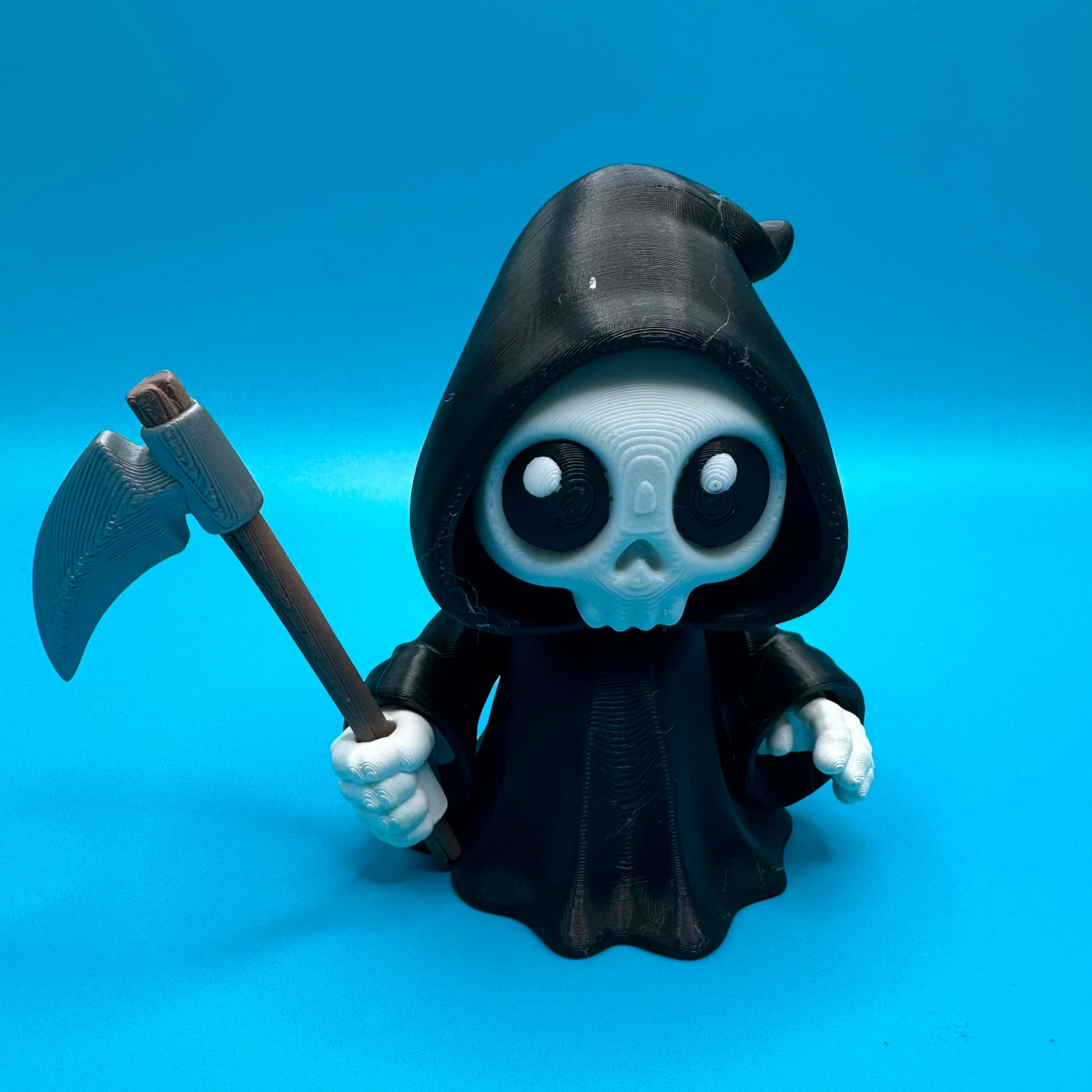 Treat yourself (or someone else) to the Chibi Grim Reaper 3D Print this Halloween! Choose between a scythe or sign. Perfect for your spooky decor. Tombstone included.